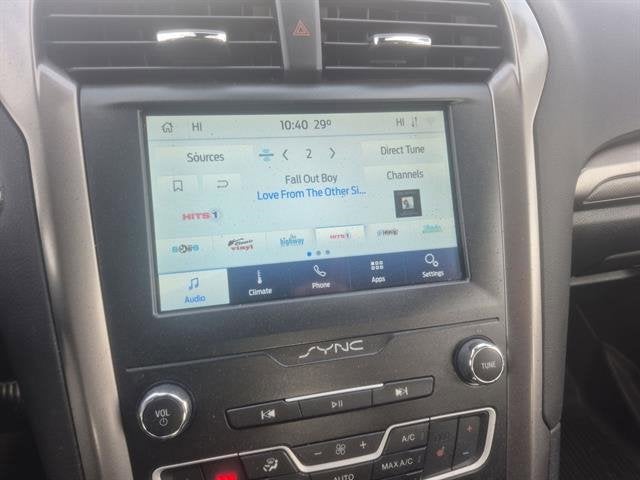 Experience style, safety, and performance with this sleek Black 2020 Ford Fusion SE AWD. Powered by a turbocharged EcoBoost 2.0L engine and paired with a 6-speed shiftable automatic transmission, this sedan offers confident handling in all weather conditions. Enjoy modern tech like an 8-inch touchscreen with SYNC infotainment, Apple CarPlay, Android Auto, Bluetooth®, and FordPass Connect with Wi-Fi hotspot capability. Stay protected with advanced driver assistance features such as Front Automatic Emergency Braking, Lane Keeping Assist, Rear Cross Traffic Alert, Blind Spot Monitoring, and a Rearview Camera. Comfort comes standard with power-adjustable front seats, dual-zone automatic climate control, and heated side mirrors. With a sophisticated design, chrome accents, and spacious interior, this Fusion SE is ready for your daily commute or weekend getaway. Don't miss your chance to own a well-equipped, all-wheel-drive sedan that blends reliability, technology, and safety.
